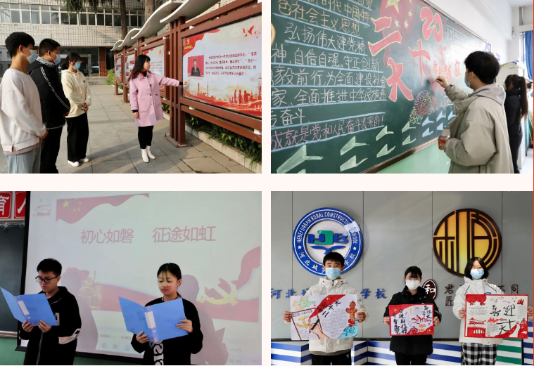 德育中心、校团委、思政教研室通过“党的二十大报告宣讲”主题团课、主题班会、黑板报、手抄报、诗歌朗诵等多种形式,带领学生学习宣传党的二十大精神,深刻领悟精神内涵,通过学习,勉励青年学生坚定理想信念,筑牢精神之基,厚植爱国情怀,矢志不渝跟党走。